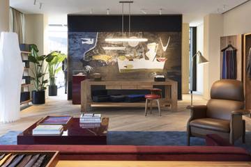 Bei dem Interieur setzt Brioni auf Vintage-Möbel der 50er und 80er in Kombination mit Wandteppichen und Teppichen von M.I.T.A., einem Hersteller aus Genua.