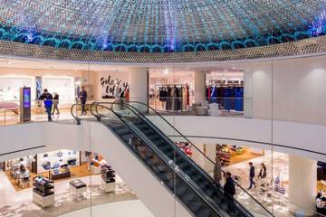 Schon äußerlich gibt sich das bekannte Kaufhaus als Galeries Lafayette zu erkennen, soll eine stilisierte Kuppel doch an den berühmten Pariser Flagshipstore am Boulevard Haussmann erinnern; innen ist sie dann in ganzer Pracht zu bewundern.