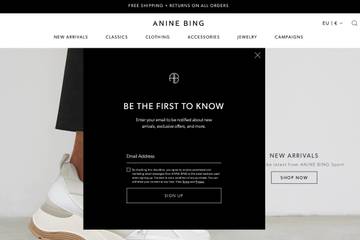 Der beste Newsletter ist ohne Abonnenten wenig wert. Um mit vergleichsweise wenig Aufwand und vor allem ohne externe (Media-)Kosten eine interessierte Leserschaft zu gewinnen, sollte darum unbedingt auf der eigenen Website dafür geworben werden. Das bedeutet vor allem, hinreichend viele und auffällig gestaltete Optionen für die Anmeldung zum Newsletter anzubieten. Zudem muss der Anmeldeprozess leicht zu durchlaufen sein – für die Erhebung von Daten ist später Zeit. Nicht zuletzt sollten bei der Gestaltung der Anmeldeseite sowohl die Benefits für den Nutzer als auch die grundlegende Kommunikation möglichst klar und zielgerichtet formuliert werden. Wichtig zu wissen: Auch wenn Störer mit einer Einladung zum Newsletter – wie hier bei Anine Bing – den Websitebesucher nachweislich ärgern, zeigt die Erfahrung, dass sie erfolgreich zu einer Steigerung der Anmeldungen führen. Darum – bloß keine Hemmungen!