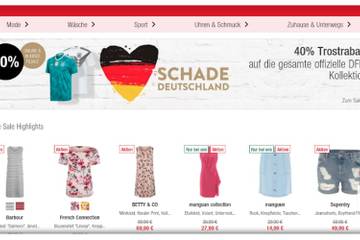 Nur einen Tag nach dem Ausscheiden der deutschen Nationalmannschaft bei der Fußball-WM haben die ersten Händler mit dem Verramschen der verbliebenen Fan-Artikel begonnen. Die Warenhauskette Kaufhof lockte am Donnerstag unter dem Motto «Schade Deutschland» mit einem «Trostrabatt» von 40 Prozent auf die Trikots der deutschen Mannschaft.