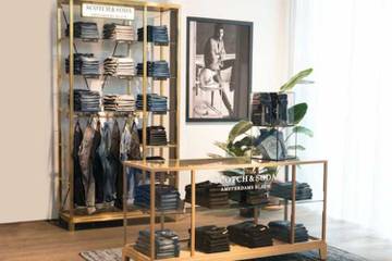 Auf das neue Denim Shop-in-Shop-Konzept wurde viel Liebe zum Detail und authentische Materialen und Bearbeitungen verwendet; es kombiniert Eichenholz, beschichteten Stahl und Regale mit Glas. In Messingvitrinen werden ausgesuchte Stücke der Kollektion ausgestellt.