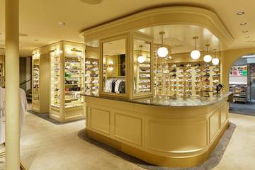 Auch im Inneren setzt Solebox auf goldig-gelbe Töne. Diese werden für ein Konzept verwendet, das an eine typische Pariser Brasserie angelehnt ist. Passend dazu arbeitet der Einzelhändler erstmals mit einem lokalen Gastronomiepartner, dem Café Inn, zusammen, welches Kaffeespezialitäten im Store anbietet. Sitzgelegenheiten vor dem Store laden zum Verweilen ein.