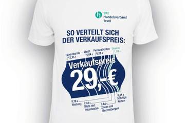 Dem mittelständischen Modefachhandel bleibe meist “nach Abzug aller Kosten nur ein bescheidener Gewinn”, wie Ergebnisse des BTE-Jahresbetriebsvergleichs von 2016 zeigen. Bei einem beispielhaften T-Shirt mit 29 Euro Verkaufspreis verbleibt bei durchschnittlichen Kosten von 27,98 Euro nur ein Gewinn von 1,02 Euro, zeigen die BTE-Zahlen.