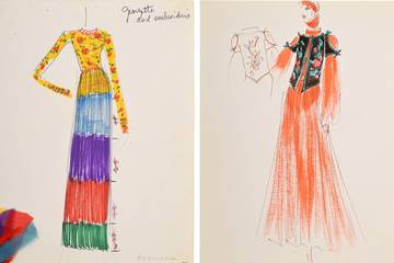 Die 125 handkolorierten Skizzen aus Karl Lagerfelds Anfangszeit für das römische Modehaus Tiziani werden am 18. April von Palm Beach Modern Auctions versteigert. Viele von ihnen enthalten noch die Originalstoffmuster.