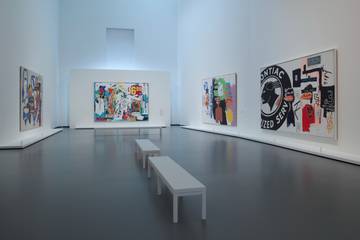 Unter den Exponaten ist auch eine ihrer letzten als Duo entstandene Arbeiten: «6.99». Darauf sind die Silhouette einer Frau zu erkennen, zwei American-Football-Spieler sowie Zahlen. Motive, die von Warhol (1928-1987) stammen, Basquiat (1960-1988) vervollständigte sie mit seinen für ihn typischen Totenkopf- und Graffiti-Elementen. Meist begann Warhol die gemeinsamen Werke, die Basquiat dann überarbeitete.