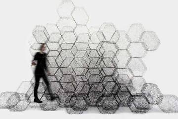Fotos: Textilmuseum St. Gallen / Stone Web: Idalene Rapp und Natascha Unger, Modulare Wand, 2017. Die Module wurden mit Wickeltechnik geformt und mit Bioharz versteift. © Weißensee Kunsthochschule Berlin