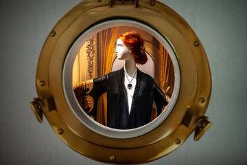 Fans des Films werden die Inszenierung des Designers Maarten Spruyt wiedererkennen. Im ersten Saal liegt das Schiff zur Abfahrt bereit. Man hört das durchdringende Kreischen der Seemöwen. Das Schiffshorn signalisiert die Abfahrt: „Wir legen ab“. Also schnell, noch ein letzter Kuss. Im weiteren Verlauf der Ausstellung werden die Kostüme schlichter. Man verlässt die Gemächer der Reichen und gelangt auf das Zwischendeck der dritten Klasse. Umso bemerkenswerter ist die Begegnung von Rose (Kate Winslet) und Jack (Leonardo DiCaprio), von Arm und Reich. Der Rundgang folgt ihrer Romanze über das Deck, vorbei an luxuriösen Abendessen und sogar bis in den Maschinenraum – und sie endet tragisch. Um dies zu verarbeiten, hilft der Beitrag des Modefotografen Jasper Abels. Er schuf einen Moment der Entspannung in einem Raum, in dem man sich kurz ausruhen kann. In seiner Filmcollage sind Aufnahmen des Schiffswracks aus dem Jahr 1985 zu sehen.