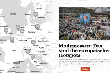 Scrollen Sie runter um durch die interaktive Landkarte zu navigieren. Klicken Sie auf 'Start Exploring' und benutzen Sie den Pfeil um von Messe zu Messe zu wandern. Foto: FashionUnitedGALLERY
