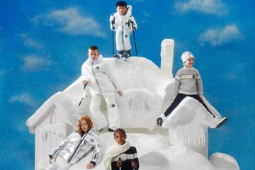 Die Kollektion umfasst Skibekleidung wie Daunenjacken, eine Skihose, Handschuhe und gefütterte Stiefel, aber auch einen Strickpullover und ein Set aus Jersey sowie eine Mütze.