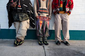 Während der Inspirationssuche in seiner eigenen Ahnengeschichte stieß er auf die Black Masking Culture in New Orleans, auch bekannt unter dem Begriff “Mardi Gras Indians”, eine Gruppe von Einheimischen, die zur französischen Kolonialzeit eine eigene Version der französischen Faschingstradition Mardi Gras ins Leben rief. Die Mardi Gras Indians spielten eine große Rolle in der Befreiung afroamerikanischer Sklaven. Die Black Masking Community steht heute auch für das Zelebrieren von komplexer, künstlerischer und traditionsreicher Kleidung, die ihren Ursprung in Mardi Gras findet. Mit seinen Kreationen für Ugg weist Emory auf die geschichtlichen Gemeinsamkeiten von Afroamerikaner:innen und Ureinwohner:innen Nordamerika hin.