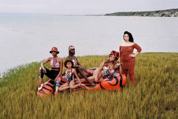 Animal Prints und abstrakte Muster zieren Badeanzüge, Sport-BHs und Accessoires. Die ikonischen drei Streifen und das Logo von Adidas fügen sich wie selbstverständlich in das kontrastreiche Gesamtbild. Accessoires wie ein Fischerhut und eine Gürteltasche vervollständigen die Kollektion, die zum Teil aus recycelten Materialien hergestellt wurde.