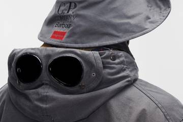 Etwas mehr als 30 Jahre später vereint die britische Outerwear-Marke Barbour seine Kräfte mit C.P. Company und daraus resultieren zwei Jacken: Barbour Mille Wachsjacke in Oliv und Tan mit drei Taschen und die Barbour 500 Miglia Wachsjacke in Oliv und Anthrazit, die kürzer ist und vier Taschen hat. Ergänzt werden die Modelle mit der Brillen-Kapuze, für die C.P. Company bekannt ist. Neben den Jacken enthält die Kapsel auch einen schwarzen Kapuzenpullover und Accessoires.