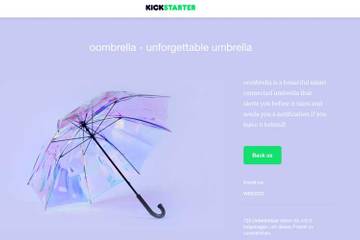 Nie mehr vom Regen überrascht werden, das verspricht der OOmbrella. Er erinnert seinen Besitzer daran, ihn mitzunehmen, wenn es regnet und sendet eine Erinnerung an das Smartphone. Der Oombrella ist mit anderen Oombrellas vernetzt und erstellt aus den gesammelten Wetterdaten eine Vorhersage. Außerdem kannman ihn gar nicht verlieren, denn wenn sich das Smartphone von ihm entfernt, meldet er sich. Nicht schlecht, oder?