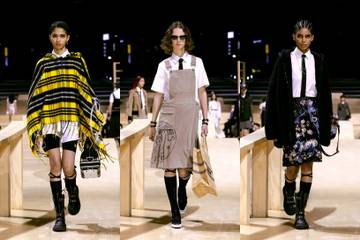 Für die Herbst-Kollektion 2022 beschäftigte sich Chiuri mit Schuluniformen und wie Studentinnen ihnen neues Leben durch individuelle Gestaltung einhauchen – bis an die Grenze zu Punk-Outfits. Faltenröcke sowie schwarz-weiße und gelb-weiße Kilts veranschaulichen die Partnerschaft mit der Ewha Womans University. „Durch die Zusammenarbeit mit Dior auf industrieller und akademischer Ebene, einschließlich eines Praktikumsprogramms, können die Studentinnen ihre Fähigkeiten entwicklen, ihre Rollen spielen und Verantwortung übernehmen”, sagt Eun Me Kim, die Präsidentin der Ewha Womans University.