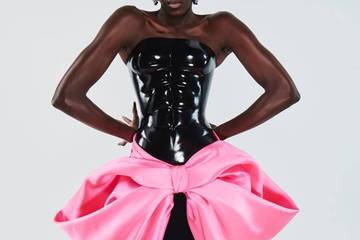 In seiner Kollektion für Sommer 2021 setzt er sich in schnörkellosen und figurativen Formen damit auseinander, was Couture und Frau zu sein heute bedeutet. In einem dreiminütigen Film, zeigen sich ein Models in Kleidern mit schwarzem Brustpanzer und pinker Riesenschleife und oder in Ensembles mit weißen, voluminösen Puff-Kragen.
