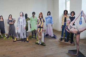 Die beliebte Marke Ganni, die ihre Popularität zum großen Teil der geschickten Zusammenarbeit mit einflussreichen Persönlichkeiten verdankt, entschied sich diesmal für die Kollaboration mit sieben verschiedenen Kreativen. Die dänische Marke beauftragte sie, zu zeigen, wie die nächsten zehn Jahre aussehen werden, und zeigte ihre Arbeiten in einer Ausstellung. Die Fotografin Rosie Marks fertigte lebensgroße Cutouts an, es gab einen Tanzfilm der Choreografin Maria Wahlberg und Hayley Blomquist fertigte eine handgestrickte Skulptur aus alten Levi's Jeans an. Es gab auch einen Pop-up-Shop, in dem die upgecycelte Kollektion von Ganni x Levi's zum Verkauf stand.