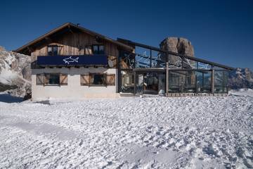 Um dies zu feiern, soll der gesamte Ort Cortina im Zeichen von Paul&Shark stehen und für Besucher:innen viel zu entdecken bieten. Ein kreatives Konzept wird in der direkt an den Skipisten liegenden Schutzhütte ‘Scoiattoli’ präsentiert. Das Hai-Motiv zieht sich durch die Inneneinrichtung des Hauses und Einkehrende können sich an speziell gestalteten Tischen stärken. Kissen, Decken und Dekor folgen dem blauen Motto der Marke. Auf der Panoramaterrasse der Hütte dient eine überdimensionale Skimaske als Kunstinstallation.