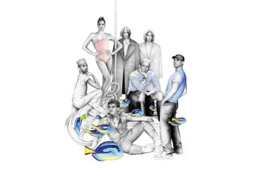Ottolinger bringt sein verzerrtes Zebra-Zickzack und Cutouts ein. Paloma Spain verwendet sein florales Korsett und kreiert eine Jeans mit Gesäßklappe. Marvin M’Toumos taucht mit Muschel-Ohringen, -body und -kleid in die Kollektion ein und auch Alan Crocetti setzt auf Accessoires – darunter Bandana-Ohrringe und Schnecken-Ringe.
