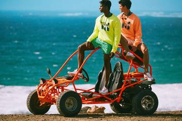 Die Kollektion umfasst typische Sommerkleidung bis hin zu aktueller Streetwear: Shorts, T-Shirts, Sweatshirts und Beach-Outfits, sowie wasserdichte Handyhüllen und Accessoires in Retro-Optik wie Gürteltaschen, Sonnenbrillenbänder und Fischerhüte. Technische Details wie wasserabweisende Innenfutter, Neoprenbänder und technische Verbindungselemente erinnern an Mistral, knallige Rottöne, strahlendes Blau und Neongelb feiern das Revival der 80er Jahre.