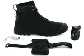 Gemeinsam mit Therm-ic, den französischen Erfindern der Skischuh-Heizung, wurde ein individuelles tragbares Heizsystem für den Palladium Boot entwickelt. Über Heizplatten, die auf der Schuhoberseite angebracht werden, wird konstant Wärme an die Füße abgegeben. Wird die Heizung nicht benötigt, lassen sich die Platten einfach abnehmen. Via Bluetooth lässt sich die Wärme in drei Heiz-Stufen bequem über das Smartphone regeln. Bis zu 13 Stunden Wärme schafft die mitgelieferte Powerbank. Auch eigene Energiespeicher lassen sich anschließen.