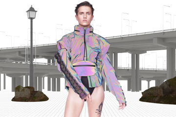 Dementsprechend sind die 15 verschiedenen Modelle der Kollektion bequem zu tragen, leicht und erlauben Bewegung. Die körpernahen Silhouetten wurden aus recyceltem Polyester und Polyamid sowie Biobaumwolle gemacht. Die Farbpalette kombiniert Schwarz-, Burgunder-, Königsblau- und Cremetöne mit farbverändernden, reflektierenden Oberflächen.