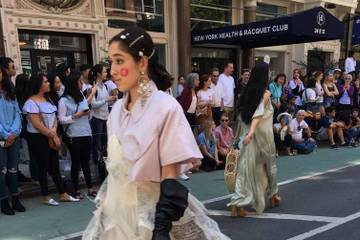 Laufstege im Freien waren schon vor Covid ein wachsender Trend. Givenchy huldigte dem Glanz der Skyline von Manhattan im Frühjahr 2016, während Marc Jacobs für den Herbst 2017 die Bürgersteige der Stadt pries. Im Mai 2019 inszenierte die Parsons School of Design, ebenfalls in NYC, einen Laufsteg unter freiem Himmel, auf dem 250 Looks aus dem Bachelor-Programm der Schule gezeigt wurden, während die Models die East 13th Street entlang schritten, begleitet von einem Schlagzeugquartett. Unter der späten Frühlingssonne wurde die Mode im wahren Licht des Tages dargestellt. Und in der Nacht, als der Regen auf die Tüllstücke von Rodartes Präsentation im Frühjahr 2019 fiel, die auf dem kleinen marmornen Friedhof im East Village von Manhattan stattfand, fügte dies dem Anlass noch etwas Mysteriöses und Romantisches hinzu.