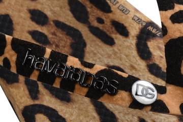 Leoparden- und Zebra--Drucke, Markenzeichen der italienischen Luxusmarke, zieren das und das „Classics“-Modellen der Flip-Flop Marke, während Blau-Weiße-Töne und vielfarbige Dekorationen, die das Mittelmeer und Sizilien repräsentieren, die Icons-Modelle von Havaianas schmücken.