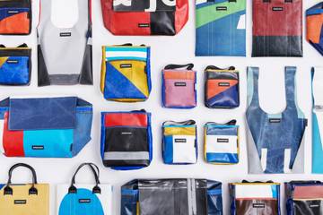 Die von der Comme des Garçons-Gründerin Rei Kawakubo entworfene Kapsel umfasst fünf Taschen, die in Japan hergestellt und ausschließlich aus ausrangierten Lastwagenplanen gefertigt wurden – wie es für Freitag-Taschen üblich ist. Funktionalität steht bei den Modellen im Vordergrund, die sich durch ihr farbenfrohes Design auszeichnen.