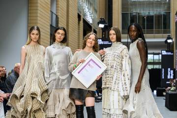 Gewinnerin des ersten Preises bei den Master-Studierenden und des Sonderpreises Strick ist Minerva Skyttä von der Aalto University. Der zweite Preis ging an Sophie Schmidt von der Fakultät Textildesign der Burg Giebichenstein Kunsthochschule Halle.