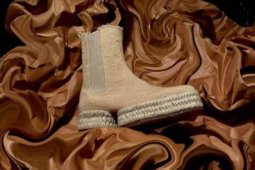 Islands Espadrille ist der neue Stiefel aus dem CAMPERLAB, der in einer Limited Edition gemeinsam mit der Ethical Fashion Initiative (EFI) entstand. Die unverkennbaren und namensgebenden „Trittinseln“ stammen vom ursprünglichen Modell, das für die Neuauflage aus dem Camper-Archiv geholt und mit einer spitzen Zehenpartie und neuen Form umgearbeitet wurde. Der Schuh besteht aus in Burkina Faso handgewebter und mit Naturfarben gefärbter Biobaumwolle sowie Jute und einer Sohle aus LACTAE HEVEA®, der Milch des Kautschukbaums. Die neue CAMPERLAB-Kooperation mit EFI ist in Beige und Gelb erhältlich.