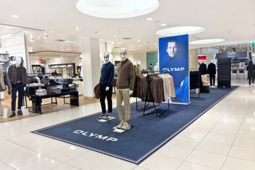 Im Zentrum der Pop-up-Fläche im Eingangsbereich der Herrenabteilung im Erdgeschoss stehen großflächige und emotional inszenierte Motive des Hollywoodstars Matthew McConaughey, die von einer hochwertigen Präsentation der aktuellen OLYMP Kollektionen an Hemden, Pullovern, Strickpolos und Overshirts umrahmt werden.
