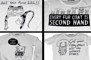 Der britische Zweig der Tierschutzorganisation Peta (People for the Ethical Treatment of Animals) hat sich mit dem Londoner Modelabel Black Score zusammengetan, um eine Sonderkollektion von T-Shirts und Sweatshirts in limitierter Auflage herauszubringen, die Petas Anliegen unterstützen. "Get your filthy paws off my woolly draws", "your killer...
