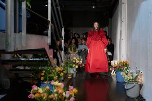Das japanische Label Houga präsentierte seine Herbst/Winter 2026 Kollektion während der Tokyo Fashion Week und wurde 2018 von Designerin Moe Ishida gegründet. Credits: Rakuten Fashion Week Tokyo