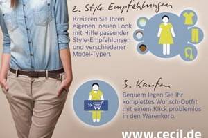 Das zur CBR Fashion Group gehörende Modehaus Cecil ermöglicht seinen Kundinnen nun eine neuartige Art der virtuellen Anprobe. Der Online-Ankleideraum vereinfacht es den Käuferinnen, Kombinationen aus Kleidungsstücken auszuprobieren. Dabei gibt die Homepage den Kundinnen verschiedene Models zur Hand, welche mit unterschiedlichen Kleidungsstücken angezogen werden können.